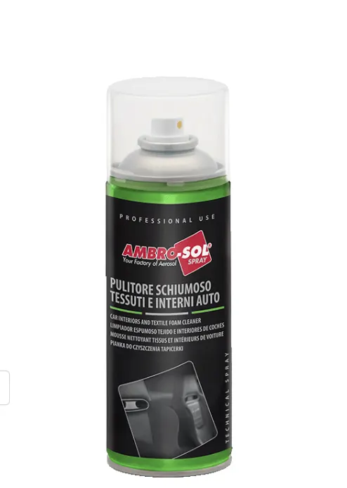 Il pulitore schiuma per tessuti Ambro-Sol A471 da 400 ml è un detergente specifico progettato per la pulizia efficace di sedili auto, tappezzeria, moquette e tessuti presenti negli interni dei veicoli. Grazie alla sua speciale formula attiva in schiuma, questo prodotto penetra in profondità nelle fibre del tessuto rimuovendo sporco, macchie e residui senza danneggiare le superfici trattate.