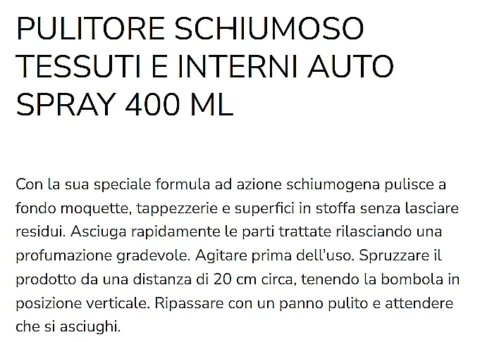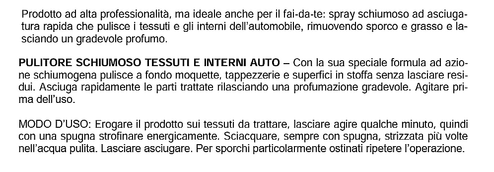 - pulitore schiuma per tessuti e tappezzeria auto