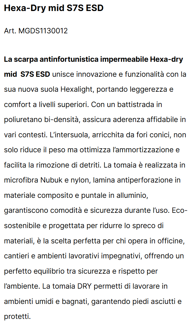 Scegliere queste scarpe significa investire in un prodotto professionale, capace di garantire protezione, durata nel tempo e massimo comfort. Perfette per chi non accetta compromessi sul lavoro.
