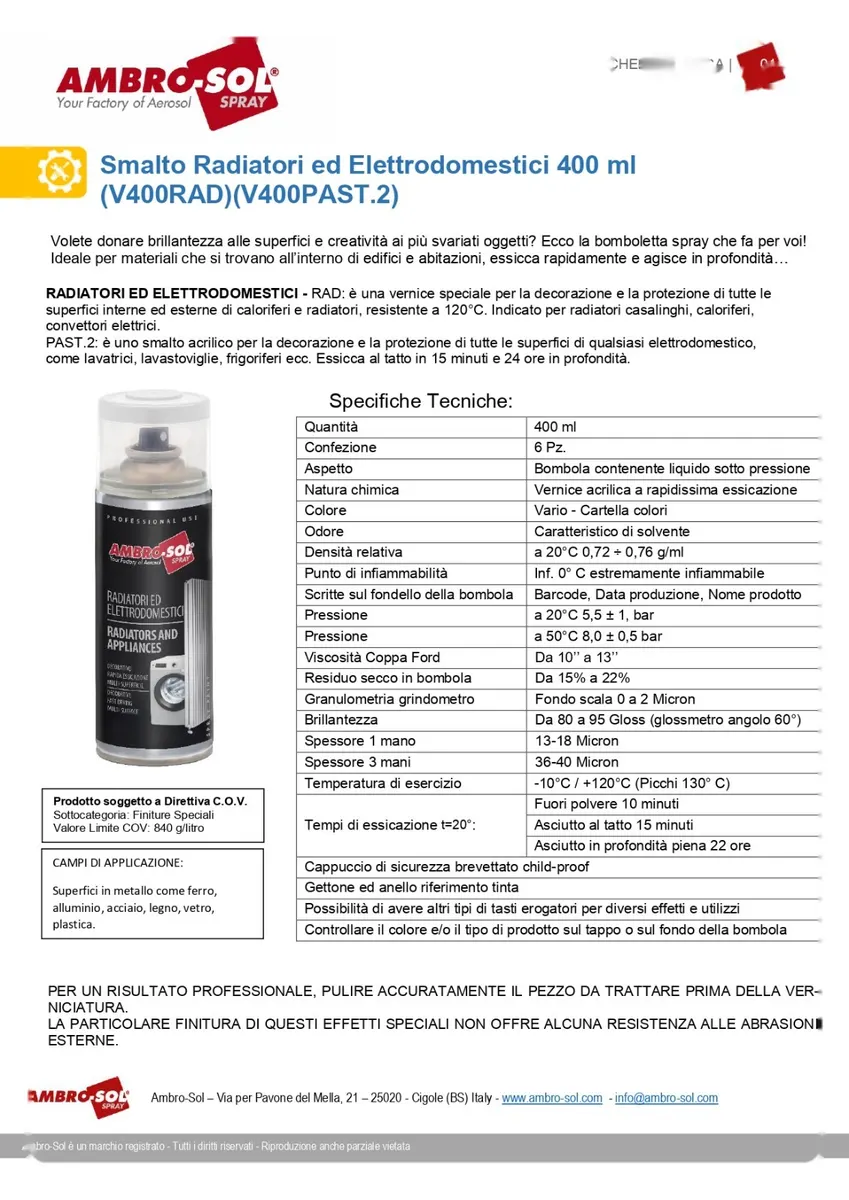 Il prodotto è ideale per utilizzi su termosifoni, radiatori e superfici metalliche esposte a calore, risultando versatile e pratico. La qualità del marchio Ambro-Sol garantisce affidabilità e prestazioni elevate.