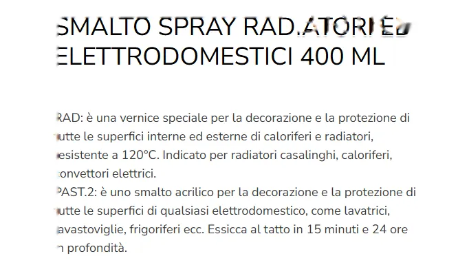 • Smalto spray specifico per radiatori e termosifoni